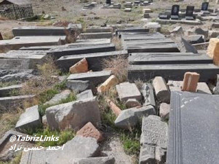 وضعیت قرمز میراث و تاریخ آذربایجان همانند محیط زیست آن؛ تصاویر تخریب های شدید در گورستان تاریخی روستای کرجان تبریز مثل گورستان تاریخی پینه شلوار شادآباد