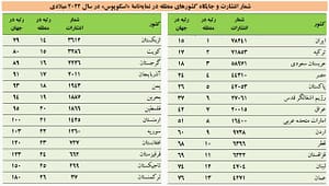 جایگاه ایران در «اسکوپوس» از نظر تعداد انتشارات