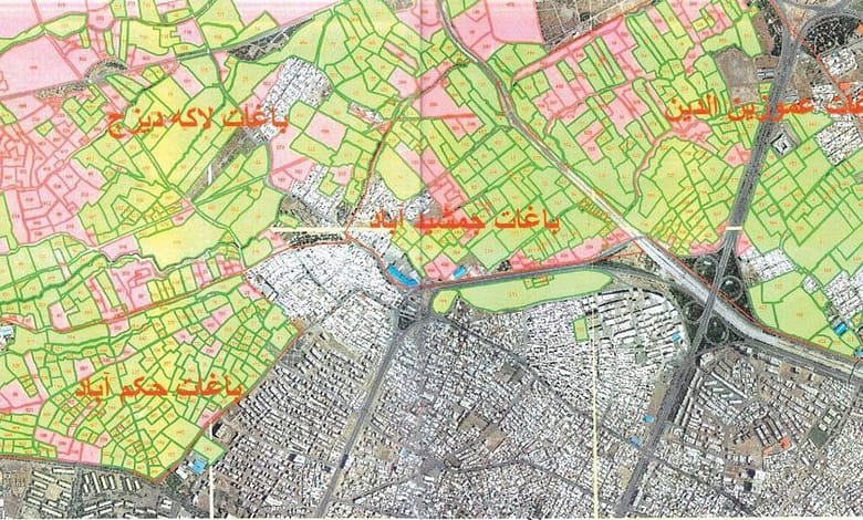 در مورد جغرافیا و محدوده باغات تاریخی و سرسبز منطقه شمال غرب تبریز، بهترین و معتبرترین منبع، نقشه دارالسلطنه تبریز (قراجه داغی) است که این نقشه در سال ۱۲۹۷قمری و در دوره سلطنت ناصرالدین شاه قاجار در تبریز ترسیم شده و به اعتبار وجود حجم بالای اطلاعات در متن نقشه، به نظر برخی از پژوهشگران نقشه دارالسلطنه تبریز را می توان کتاب تصویری نیز نامید.