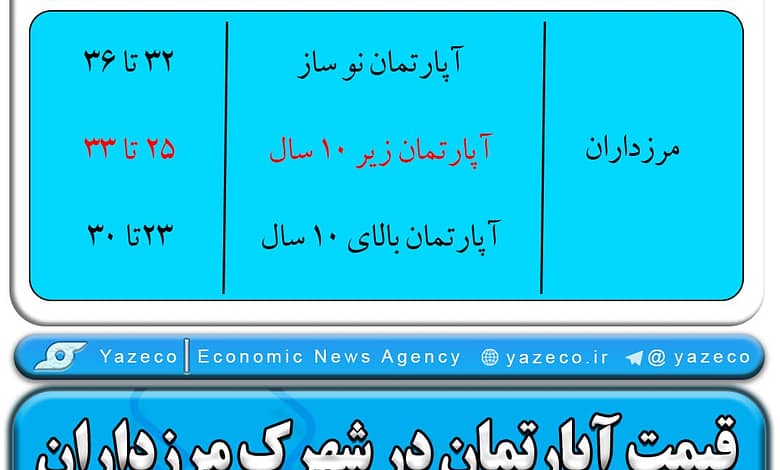 قیمت هر واحد آپارتمان با سن بالای ۱۰ سال در مرزداران بین ۲۳ تا ۳۰ میلیون تومان متغیر است.