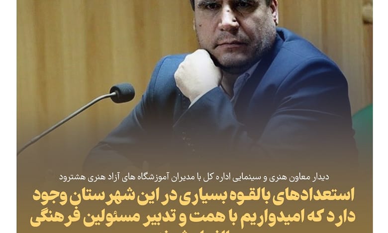 معاون هنری و سینمایی اداره کل فرهنگ و ارشاد اسلامی استان با مدیران آموزشگاههای آزاد هنری شهرستان هشترود دیدار و گفت و گو کرد