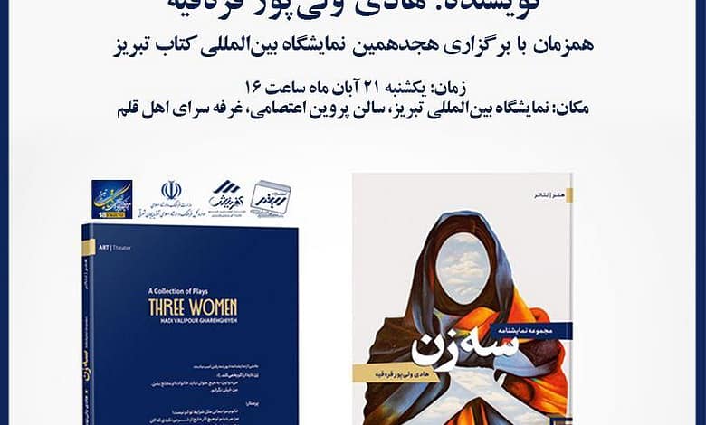 به گزارش پایگاه خبری یازاکو، همزمان با برگزاری هجدهمین نمایشگاه بینالمللی کتاب تبریز، از کتاب مجموعه نمایشنامه با عنوان «سه زن» نوشته هادی ولیپور قرهقیه رونمایی میشود.