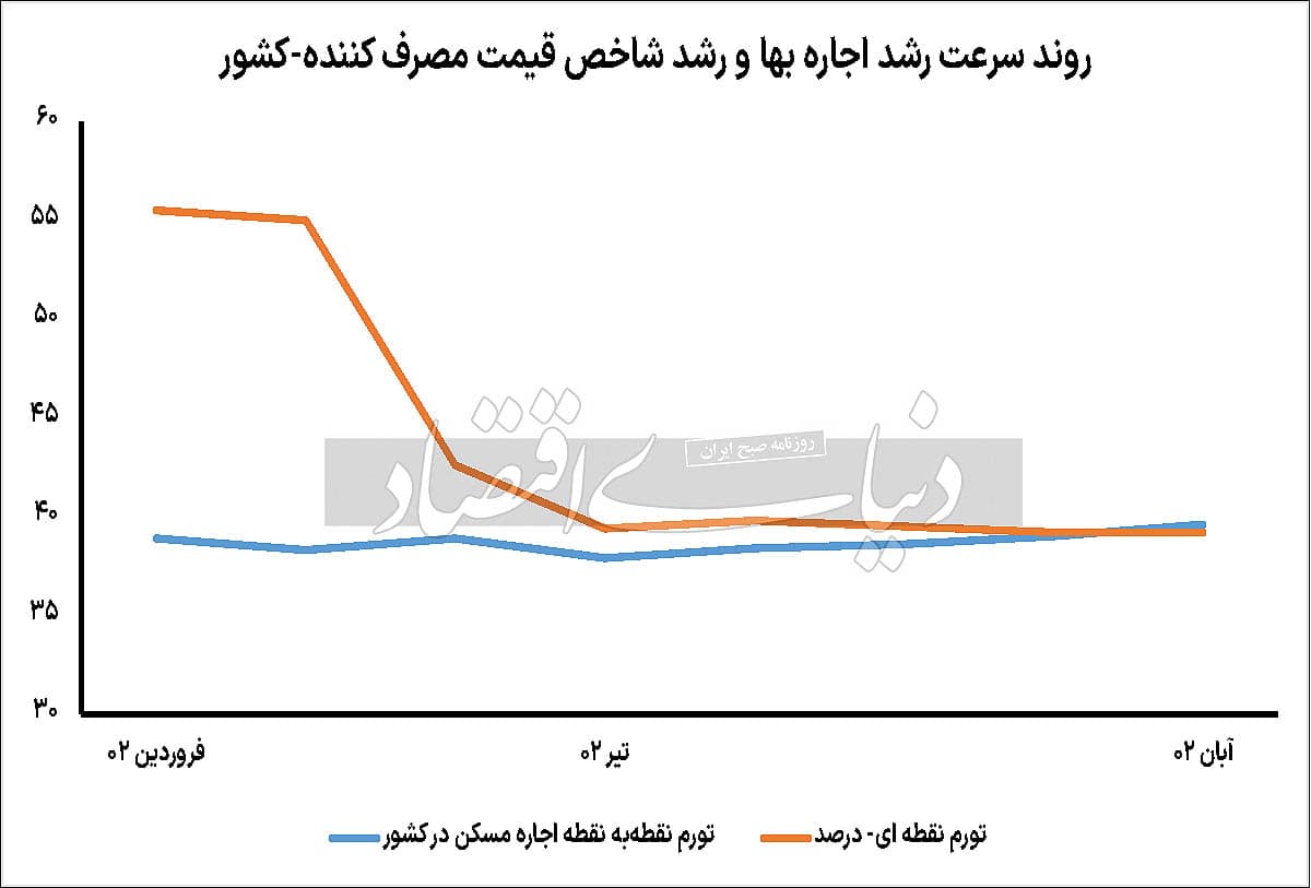 نسبت تورم عمومی به تورم اجاره تا قبل از عصر جهش قیمتها در بازار مسکن، به طور میانگین معادل 1.5 بود. یعنی به طور متوسط در سالهای قبل از جهش قیمت، تورم عمومی 1.5 برابر تورم اجاره کشوری بود. اما در آبان امسال این نسبت معکوس شد و نرخ تورم اجاره از تورم عمومی جلو زد؛ به واسطه تحولات بازار اجاره مسکن کشور در آبان امسال، نسبت تورم اجاره به تورم عمومی 1.01 شده است. بررسیهای «دنیایاقتصاد» نشان میدهد، از ابتدای دهه 90، یکبار در سال 93، تورم اجاره مسکن از تورم عمومی سبقت گرفت. بعد از آن تورم عمومی همواره جلوتر از تورم اجاره بود اما در آبان این نسبت معکوس شد. براساس آمارهای رسمی، بر مبنای اطلاعات مربوط به تغییرات شاخص اجارهبهای مسکن که به تازگی مرکز آمار ایران آن را منتشر کرده است اجارهبها در شهرهای کشور در آبان امسال نسبت به آبان سال گذشته 39.6درصد افزایش یافت. نرخ تورم عمومی نقطه به نقطه در آبان امسال، 39.2درصد بوده است. این آمارها به تنهایی گویای سبقت آبان ماه تورم اجاره از تورم عمومی است. روندی که در ماههای گذشته معکوس بود. بر این اساس، نسبت تورم عمومی به تورم اجاره به 0.98 رسیده است. به این ترتیب در آبان امسال دو رویداد متفاوت در بازار اجاره مسکن کشور تجربه شد؛ یک رویداد مربوط به مسیر غیرهم جهت تورم مسکن و تورم اجاره بود؛ بهرغم کاهش قیمت مسکن در 5 ماه منتهی به پایان آبان امسال، و حتی در آبان ماه، تورم اجاره در این بازه زمانی، مثبت شد. از سوی دیگر، برای اولین بار بعد از سال 93، تورم اجاره از تورم عمومی سبقت گرفت. در دو ماه پاییز یعنی مهر و آبان اجارهبها به ترتیب 4.3 و 4.1درصد نسبت به ماه قبل رشد داشت.
