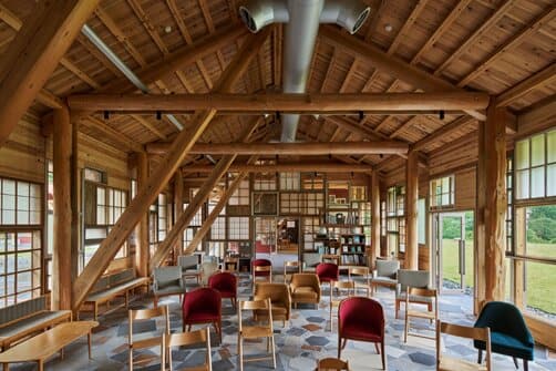 مثال سوم مرکز ضایعات صفر ژاپن استکه توسط هیروشی ناکامورا طراحی شده است و روشهای مصرف ما را هم از طریق برنامه های خود و هم از طریق زیباییشناسی به چالش میکشد. نمای این مرکز که در کامیکاتزو ژاپن قرار دارد، کلاژی از ۷۰۰ پنجره است که توسط جامعه محلی اهدا شده است. نمای داخلی و خارجی ساختمان شامل مجموعه ای از اقلام استفاده شده و چوب سرو محلی است.