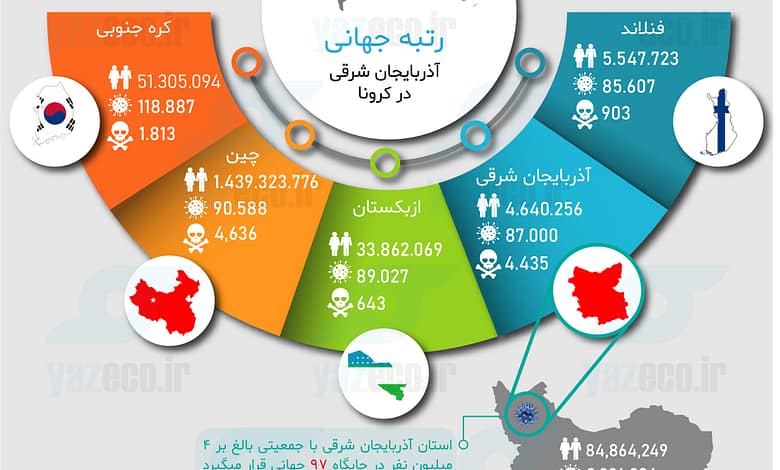 رتبه جهانی آذربایجان شرقی در کرونا (اینفوگرافی)