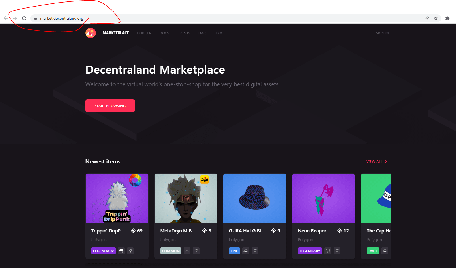 ۱.ابتدا از طریق آدرس market.decentraland.org وارد سایت اصلی زمینهای مجازی شوید.