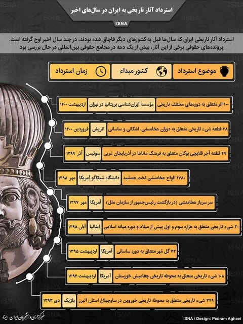 استرداد آثار تاریخی به ایران در سالهای اخیر (اینفوگرافیک)