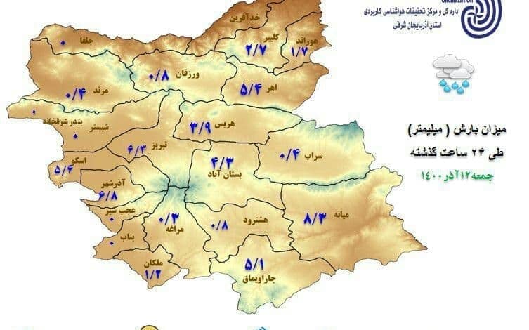 در دیگر شهرستان های استان هم کم و بیش بارندگی وجود داشته اما در شهرستان های جلفا و شبستر میزان بارندگی صفر بوده است.