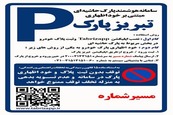 ارسال پیامک به سامانه پیامکی 2000414151: کاربران میتوانند تنها با ذکر شماره مسیر پارک، ورود یا خروج خود را ثبت کنند.