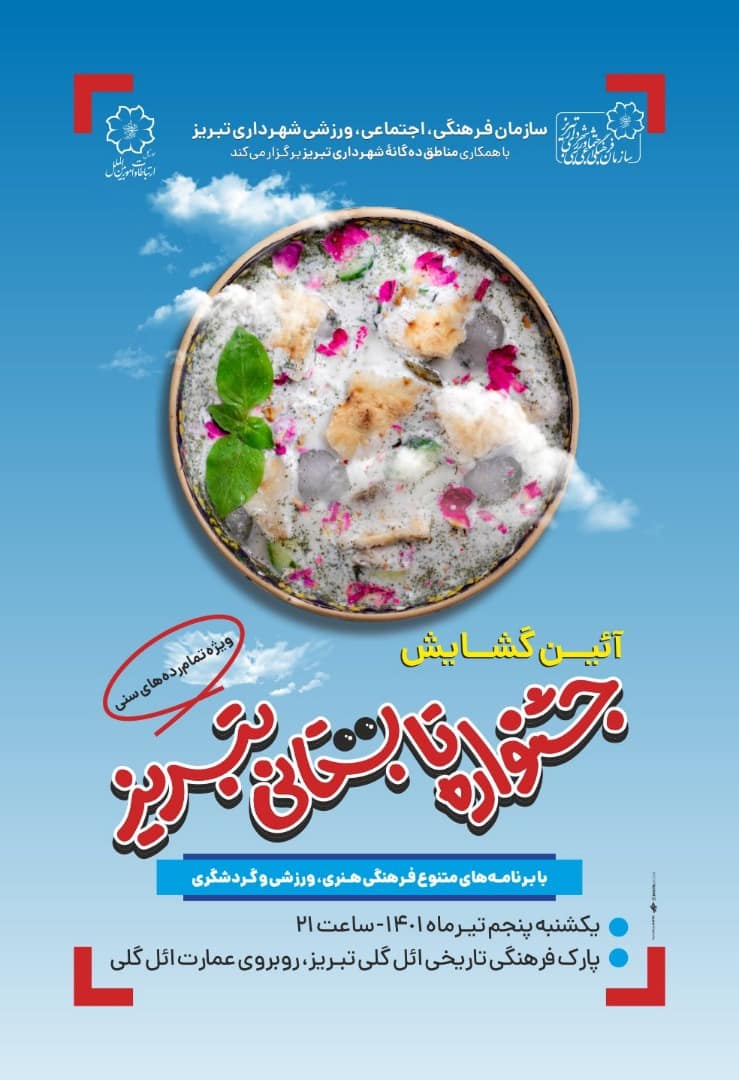 سازمان فرهنگی اجتماعی ورزشی شهرداری تبریز از همه شهروندان و پردشگران تابستای تبریز دعوت می کند که با حضور در این مراسم، یاری بخش ما در اجرای هر چه باشکوه تر آن باشند و با پیشنهادات خود بر غنای آن بیفزایند.