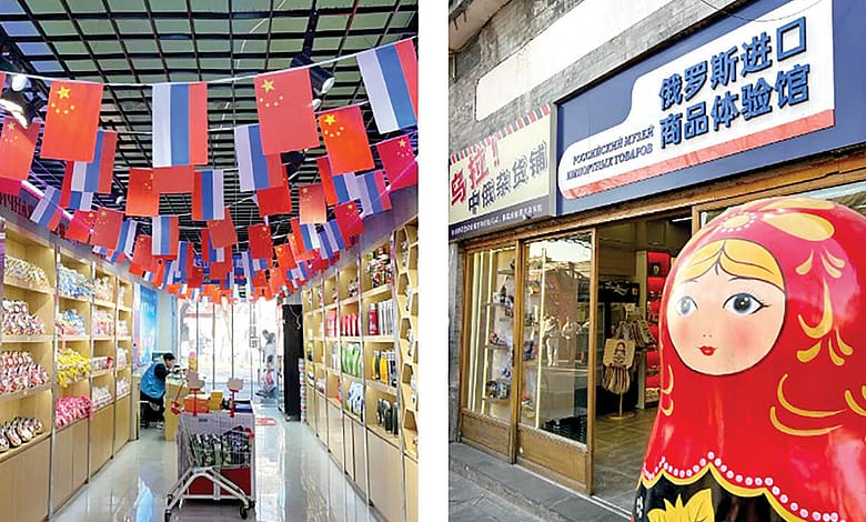 در یک فروشگاه کالاهای روسی در مرکز شهر پکن در ماه فوریه، یک فروشنده ردیفهایی از آبنباتهای بستهبندیشده، بیسکویتها و پودر شیر را مرتب کرد که برخی از محبوبترین اقلام فروشگاه بودند. او میگوید: «پرفروشترین اقلام ما عسل روسی است. این یک موفقیت بزرگ است و این شکلات هم خالص است. همه آنها خیلی خوب هستند.» او همچنین به طیف گستردهای از شکلاتها اشاره داشت. در پسزمینه، یک بلندگو پیامی را پخش میکرد و از مشتریان در «غرفه کالاهای روسی» استقبال و از محصولات روسی بهدلیل «سلامتی، مواد طبیعی و کیفیت بالا» تعریف میکرد. در پیام وی چنین تبلیغ میشد: «این نه تنها بستری برای فروش محصولات روسی است، بلکه ویترینی است که فرهنگ و جذابیت روسیه را به نمایش میگذارد.»