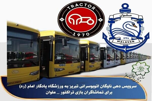 محمد حسین زاده مدیرعامل این سازمان با اعلام این خبر گفت: با توجه به برگزاری مسابقه فوتبال بین تیم های تراکتور و ملوان از دیدارهای هفته بیست و هفتم مسابقات لیگ برتر فوتبال کشور، ناوگان اتوبوسرانی تبریز جهت مراجعه به ورزشگاه یادگار امام (ره) به تماشاگر پرشور و فهیم، خدمات ایاب و ذهاب ارائه خواهد کرد.