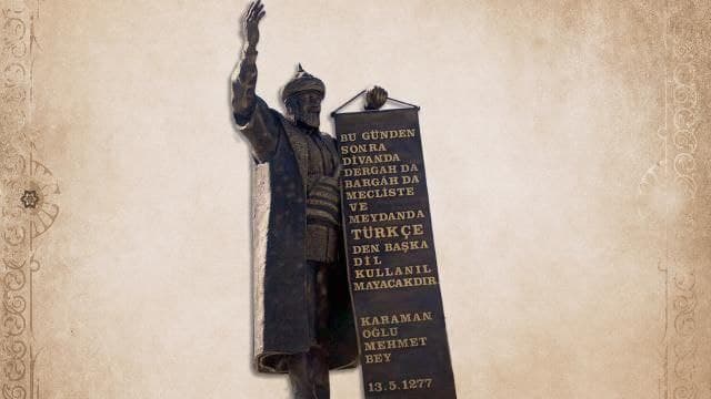 به گزارش واحد ترجمه پایگاه خبری یازاکو به نقل از تی آر تی خبر، «از این پس، هیچکس نباید در دروازه، شورا، تالار و میدان عمومی به زبانی غیر از ترکی صحبت کند.»۷۴۸ سال پیش، در ۱۳ مه ۱۲۷۷، قرامان اوغلو محمد بیگ این کلمات را در فرمان خود به کار برد.