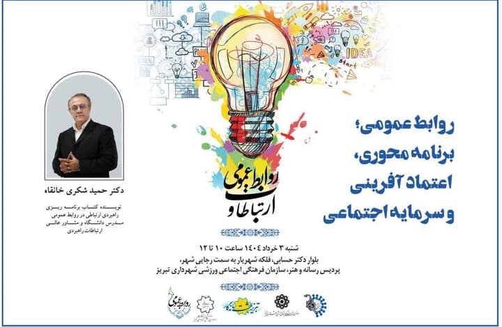 حمید شکری خانقاه، نویسنده کتاب برنامهریزی راهبردی ارتباطی در روابط عمومی، مدرس دانشگاه و مشاور عالی ارتباطات راهبردی، سخنران ویژه این مراسم خواهد بود. وی در سخنرانی خود با عنوان «روابط عمومی؛ برنامهمحوری، اعتمادآفرینی و سرمایه اجتماعی» به نقش تحولآفرین روابط عمومیها در حکمرانی نوین ارتباطی خواهد پرداخت.