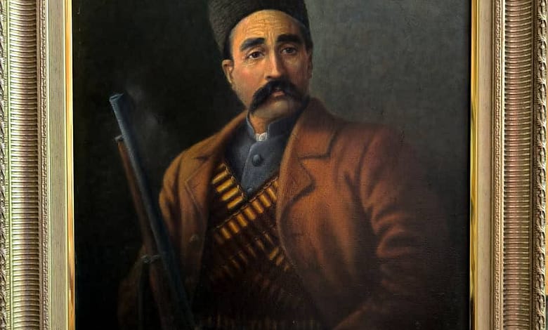 وی برای اداى دين واحترام به رشادت هاى مبارزان صدر مشروطيت ومخصوصاً ستارخان – سردار ملی- تك چهره اش را با استادی تمام و به زیبایی نقاشى نموده است.