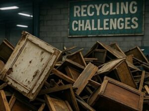 در کشورهایی مانند آلمان و سوئد، برای جلوگیری از آلودگی ناشی از سوزاندن چوبهای رنگشده، قوانین سختگیرانهای وضع شده که بازیافت چوب صنعتی را به بخش پرهزینه و محدود زبالهگردانی تبدیل کرده است. بنابراین، هرچند چوب از نظر زیستی تجزیهپذیر است، از منظر اقتصاد چرخشی و بازیافت صنعتی، یکی از دشوارترین مواد برای بازگردانی واقعی محسوب میشود.