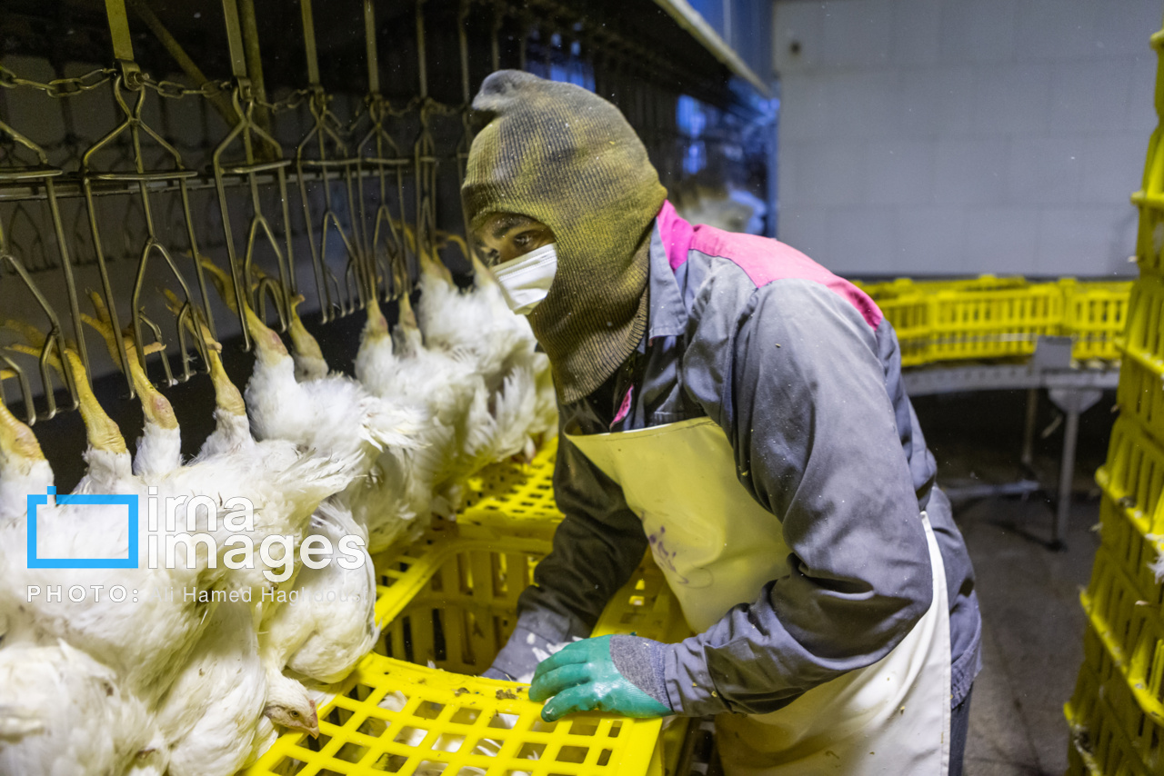 رضا حسینی پویا مدیر اجرایی یک واحد مرغداری می گوید: این واحد با ظرفیت تولید ۴۰ هزار قطعه در ساعت طرح اهدایی مقام معظم رهبری است؛ از سال ۱۳۷۶ کارهایش، انجام و ۱۳۷۸ افتتاح شده و موجب اشتغال ۱۵۰ نفر به صورت مستقیم و ۴۰۰ نفر به صورت غیر مستقیم شده است. کارگران در این واحد معمولاً از ساعت ۱۰ شب سر کار آمده و بعد از آمادهشدن از ساعت ۱۰:۳۰ استارت کار زده شده و تولید آغاز میشود. بسته به میزان تولید اگر تولید ۴۰ تن باشد تا ساعت ۶ صبح و در صورت ۷۰-۶۰ تن بودن میزان تولید، کارشان تا ساعت ۱۰ صبح ادامه مییابد.