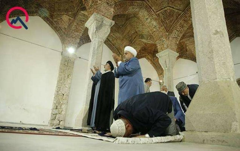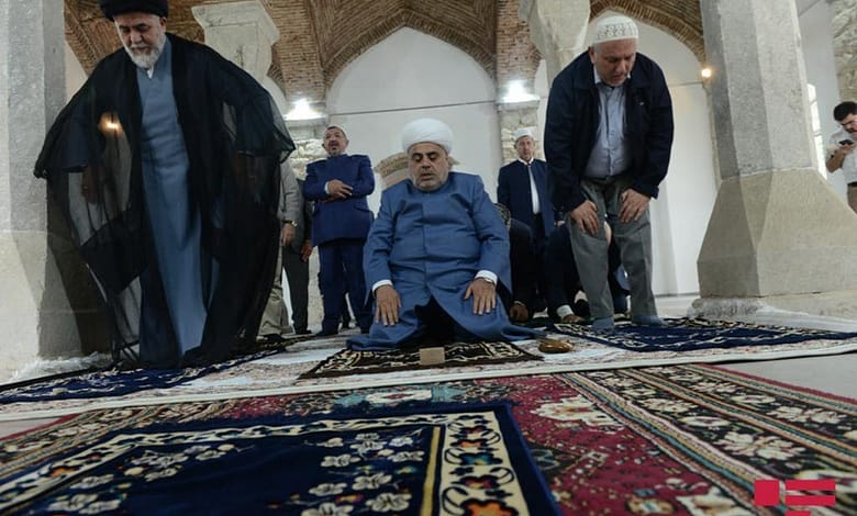 اقامه نماز رهبران جامعه مذهبی آذربایجان در مسجد ساعاتلی شوشا
