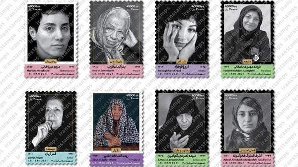 اما نکته قابل توجه تصاویر زنانی چون قمر آریان، بدرالزمان قریب، فروغ فرخزاد، مریم میرزاخانی، اشرف الملوک فخرالدوله، مجتهده امین، فریده مهدوی دامغانی و همچنین زینتالسادات امامی در این مجموعه است. اتفاقی که برای نخستین بار رخ داده و پرتره زنان روی تمبرها چاپ شده است.