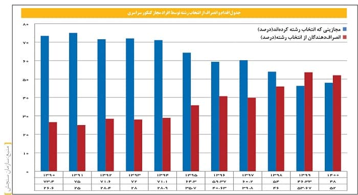 به گزارش پایگاه خبری یاز اکو به نقل از همشهری، البته این اتفاق ناگهانی رخ نداده و بررسیها نشان میدهد که از سال ۱۳۹۰ جریان انصراف داوطلبان مجاز برای انتخاب رشته شکل گرفته و بهتدریج افزایشیافته است؛ به این معنا که اگر در سال ۱۳۹۰، ۷۵ درصد داوطلبان خواهان انتخاب رشته دانشگاهی بودند در سال ۱۴۰۰ این رقم به ۴۸ درصد کاهش پیدا کرده است.