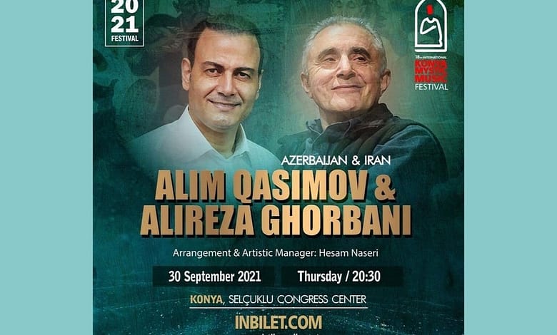 به گزارش پایگاه خبری یاز اکو، علیرضا قربانی خواننده موسیقی ایرانی با انتشار پوستری، از اجرای کنسرتی به همراه عالیم قاسیماُف خواننده نامدار آذربایجان خبر داد که قرار است در تاریخ پنجشنبه ٨ مهرماه ١۴٠٠، در هجدهمین جشنواره بینالمللی موسیقی عرفانی در شهر قونیه برگزار شود.