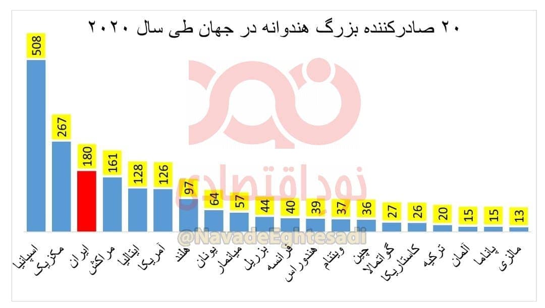 به گزارش پایگاه خبری یاز اکو به نقل از نود اقتصادی: درحالی که ایران در یک منطقه خشک و نیمهخشک قرار دارد و به ازای تولید هر کیلو هندوانه در ایران ۲۸۶ لیتر آب مصرف میشود، اما آمارها نشان میدهد ایران پس از کشورهای اسپانیا و مکزیک، با صادرات سالانه ۱۷۰ تا ۱۸۰ میلیون دلار هندوانه در رتبه سوم جهان قرار دارد.