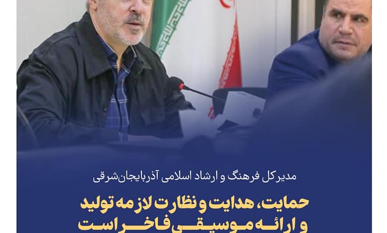 مدیرکل فرهنگ و ارشاد اسلامی آذربایجانشرقی در نشست معرفی اعضای جدید شورای شعر و موسیقی استان، گفت: حمایت، هدایت و نظارت لازمه تولید و ارائه موسیقی فاخراست.
