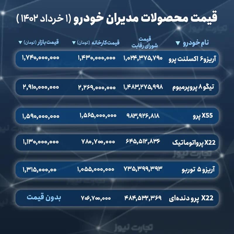 فهرست و قیمت محصولات مدیران خودرو در طرح فرسوده