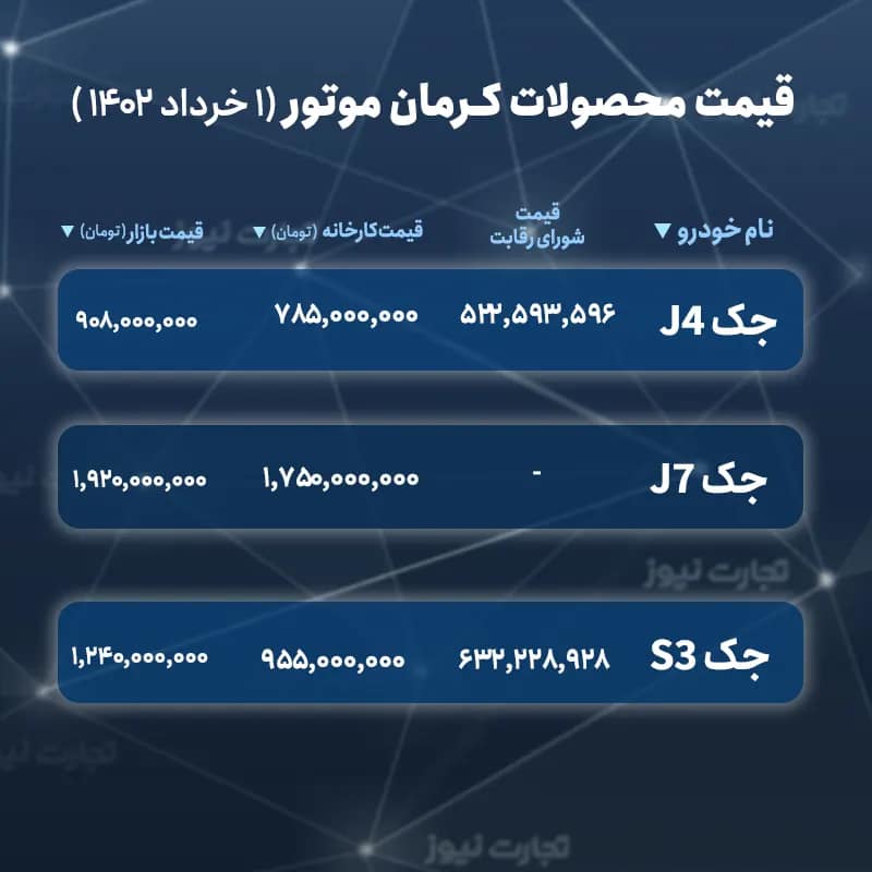 شرکت کرمان موتور نیز با سه محصول جک اس ۳، جک جی ۴ و کیامسی جی ۷ در این طرح شرکت کرده است.