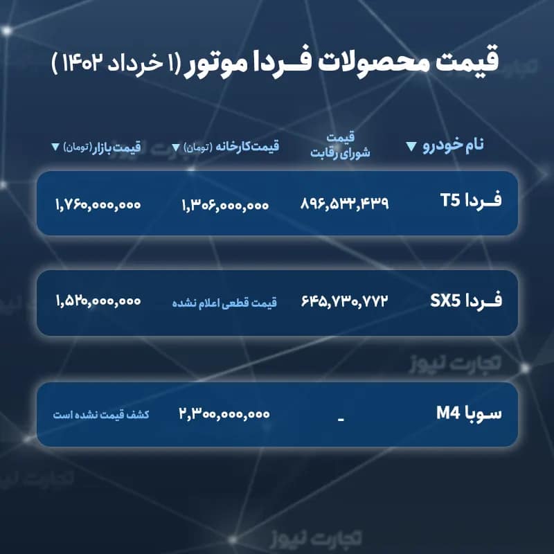 فهرست و قیمت محصولات فردا موتور در طرح فرسوده