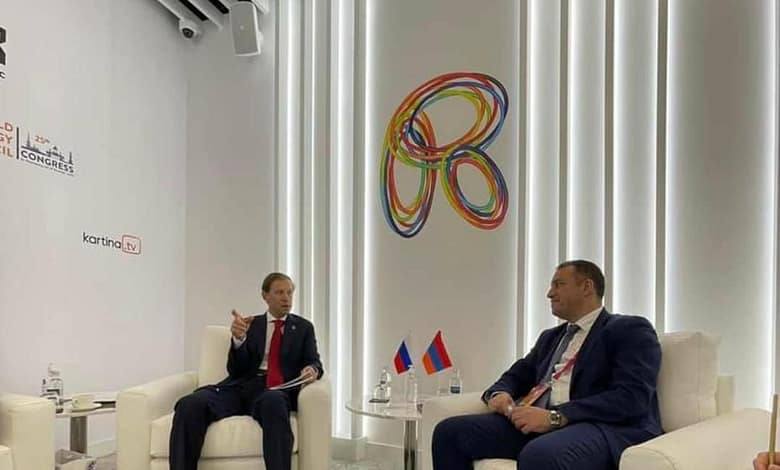 واهان کروبیان وزیر اقتصاد ارمنستان با دنیس مانتوروف وزیر صنعت و تجارت روسیه در خصوص امکان اتصال زیرساخت های ریلی دو کشور، ایجاد سرمایه گذاری مشترک در ارمنستان و افزایش رقابت پذیری اقتصاد ارمنستان گفتگو کرد.