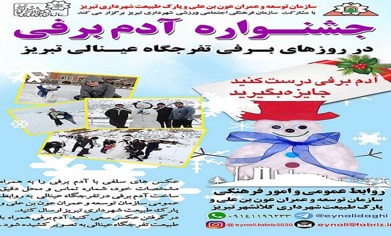 عکسهای سلفی با آدم برفی به همراه مشخصات خود، شماره تماس و محل دقیق ساخت آدم برفی در تفرجگاه عینالی به روابط عمومی سازمان توسعه و عمران عون بن علی و پارک طبیعت شهرداری تبریز ارسال شود.