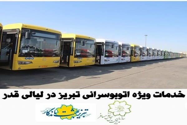 وی افزود: بیش از ۱۰۰ دستگاه اتوبوس بخش خصوصی و ملکی از ناوگان حمل ونقل عمومی در لیالی قدر ارائه خدمات خواهند نمود.