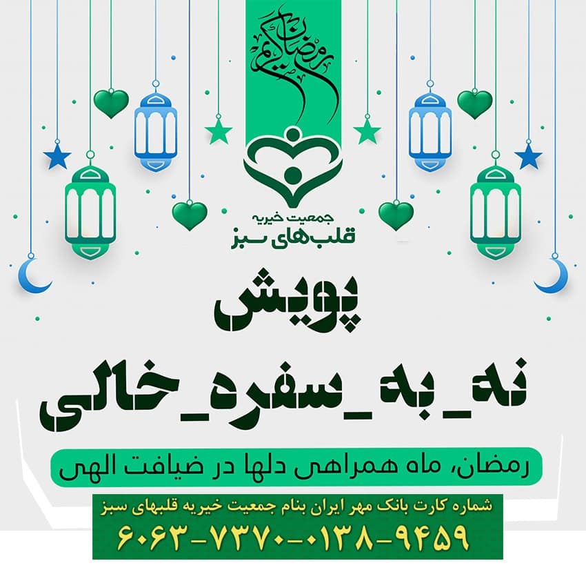مدیرعامل جمعیت خیریه قلبهای سبز تصریح کرد : ارزش ریالی بستههای غذایی در پویش نه به سفره خالی در ماه مبارک، 5 میلیون ریال بوده و شامل مواد غذایی اساسی شامل برنج، گوشت قرمز، مرغ، ماکارونی، تنماهی، خرما، حبوبات و غیره است.