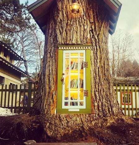 این منبع نوشت: این زن به جای قطع درخت پوسیده ای که حدود ۱۰۰ سال سن دارد، آن را به یک کتابخانه کوچک تبدیل کرد. در حال حاضر تمامی اهالی محله از این کتابخانه استفاده می کنند.