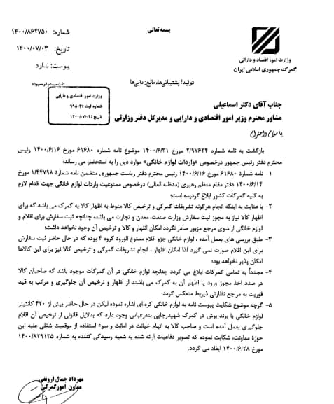 عجیب است که در نامه رهبری صراحتا به دو شرکت کره ای اشاره شده ولی در گردش کار اداری، وقتی مکاتبات به گمرک رسیده، دستور فوق تبدیل به منع کامل همه لوازم خانگی از همه کشورها شده است!