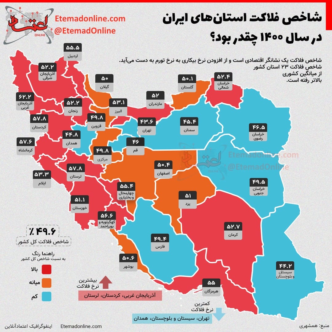 اینفوگرافی| شاخص فلاکت استانهای ایران در سال ۱۴۰۰ چقدر بود؟