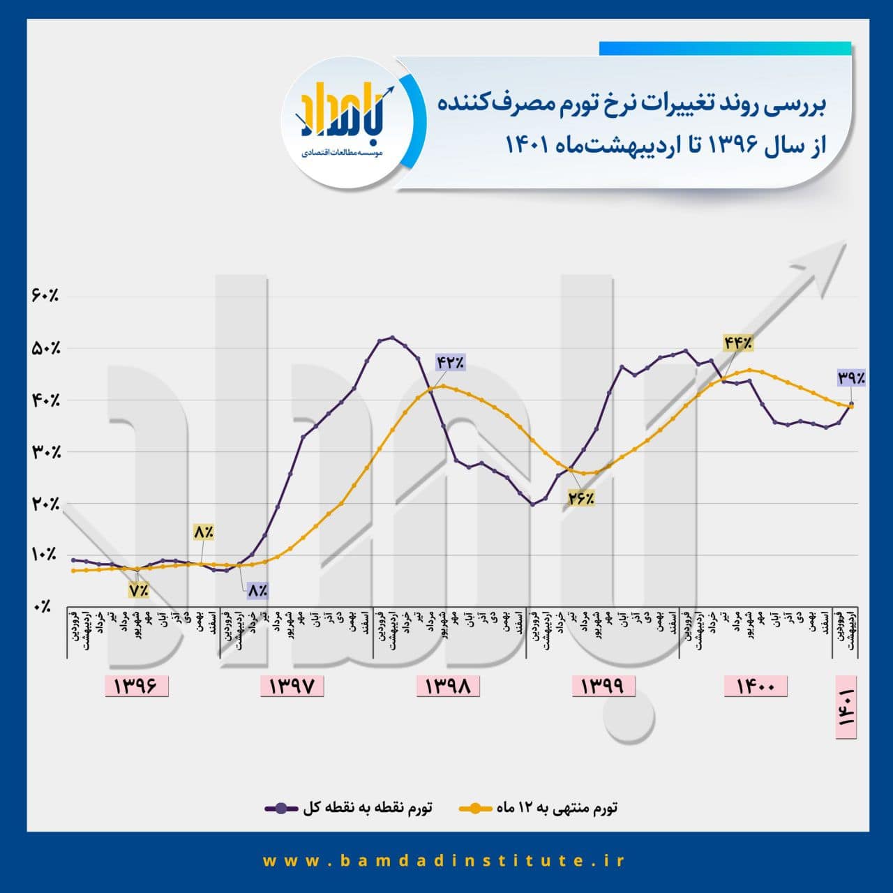 برسی روند تغییرات نرخ تورم مصرف کننده از سال ۹۶ تا ۱۴۰۱