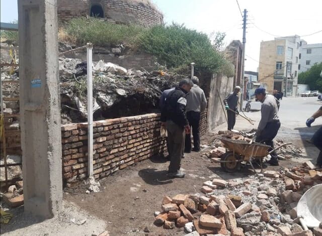 دیوار حمام قدیمی منصوریه اردبیل تکمیل میشود