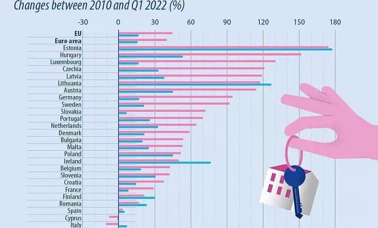 بر پایه این گزارش، قیمت مسکن در استونی، مجارستان، لوکزامبورگ، چک، لتونی، لیتوانی و اتریش طی ۱۲ سال منتهی به سه ماه نخست سال ۲۰۲۲ بیش از دو برابر شده و در همین دوره زمانی، نرخ افزایش قیمت مسکن در ۱۹ کشور عضو اتحادیه اروپا بیش از اجاره بها بوده است.