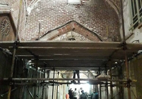 اجرای عملیات استحکام سازی طاق مابین تیمچه مظفریه و بازار کاغذفروش