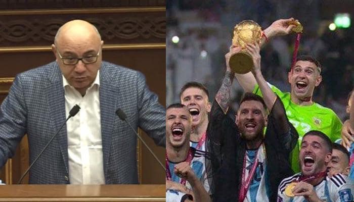 آرسنیان گفت: اجازه دهید قبل از پرداختن به موضوع انتخاب قضات دادگاه تجدیدنظر و اعضای سازمان اطلاعات مرکزی درباره بخشی از دیپلماسی پارلمانی صحبت کنم. یعنی از همین جایگاه قهرمانی تیم ملی آرژانتین در جام جهانی را از صمیم قلب تبریک می گویم. به میلیون ها هوادار مسی تبریک می گویم که انتظاراتشان برآورده شد. برای همه ما چنین موفقیت هایی را آرزو می کنم.