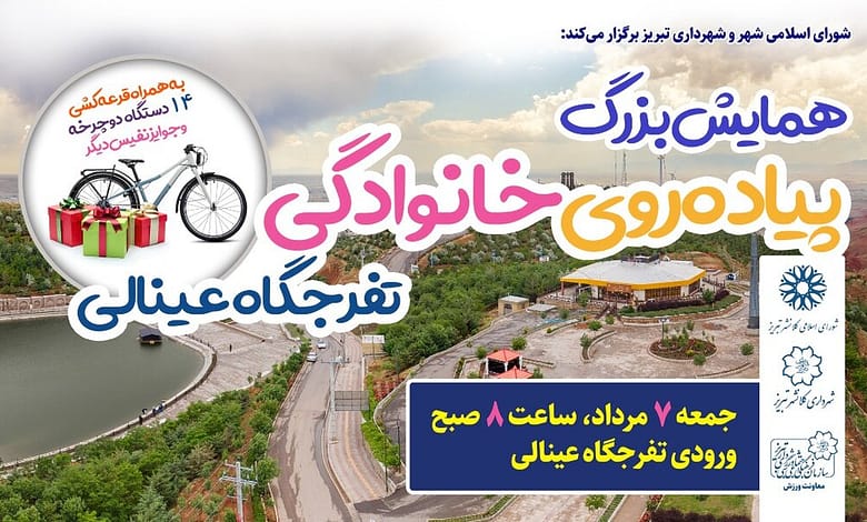 به گزارش پایگاه خبری یاز اکو به نقل از شهریار، در راستای ترویج ورزش همگانی و ایجاد نشاط و سلامت اجتماعی، همایش بزرگ پیادهروی خانوادگی از ساعت ۸ صبح جمعه هفتم مرداد در تبریز برگزار میشود.