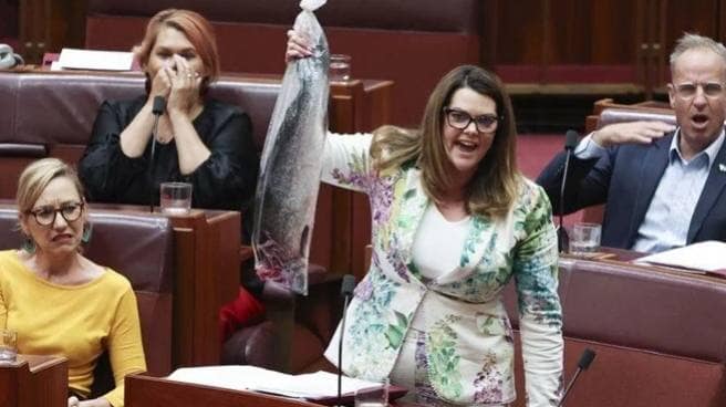 سارا هانسون یانگ سناتور حزب سبزها در اعتراض به این لایحه، یک ماهی قرمز بزرگ سر بریده و در حال فساد را در پارلمان این کشور به دست گرفت و گفت: به صنعت ماهی قرمز فاسد و سمی در قوانین زیستمحیطی ما امتیاز داده میشود. صنعت سمی بعدی کدام خواهد بود؟