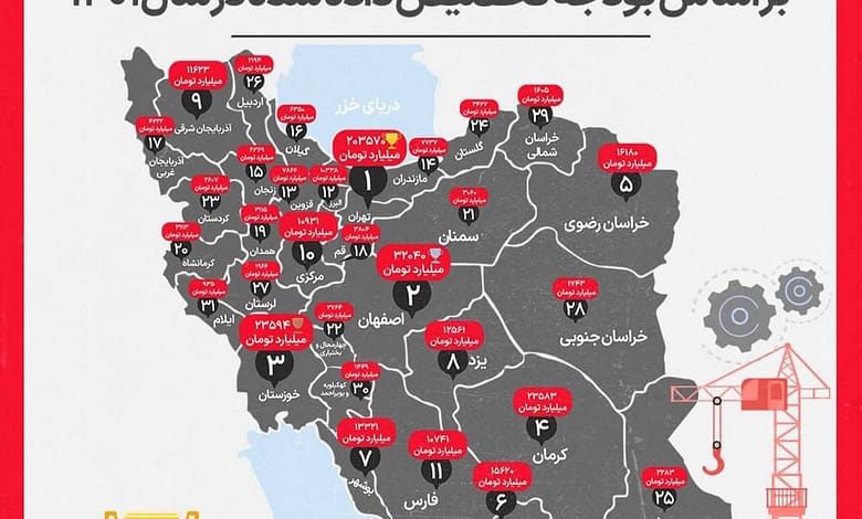 بر این اساس استان تهران با 203 هزار و 570 میلیارد تومان رتبه اول، استان اصفهان با 32 هزار و 40 میلیارد تومان رتبه دوم و استان خوزستان با 23 هزار و 594 میلیارد تومان در رتبه سوم قرار دارد.