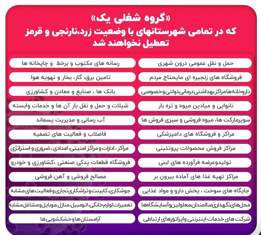 مشاغلی که در شهرهای نارنجی باید تعطیل شوند